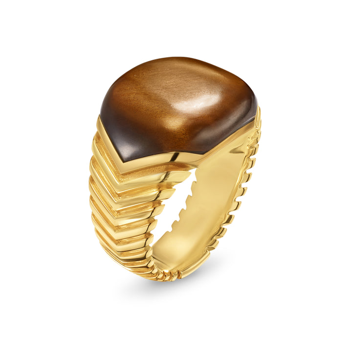 Chevron Signet Ring in 18K Yellow Gold with Tiger's Eye, 18mm