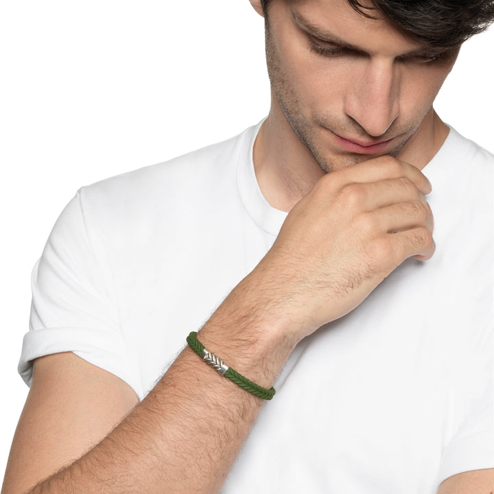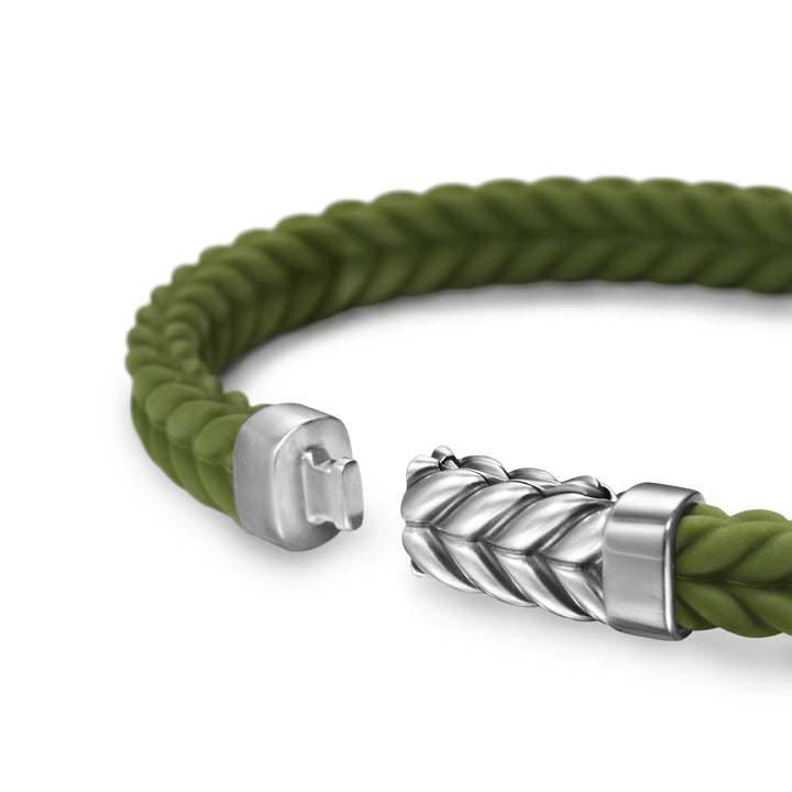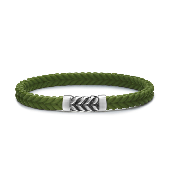 Chevron Bracelet in Green Rubber with Sterling Silver, 6mm