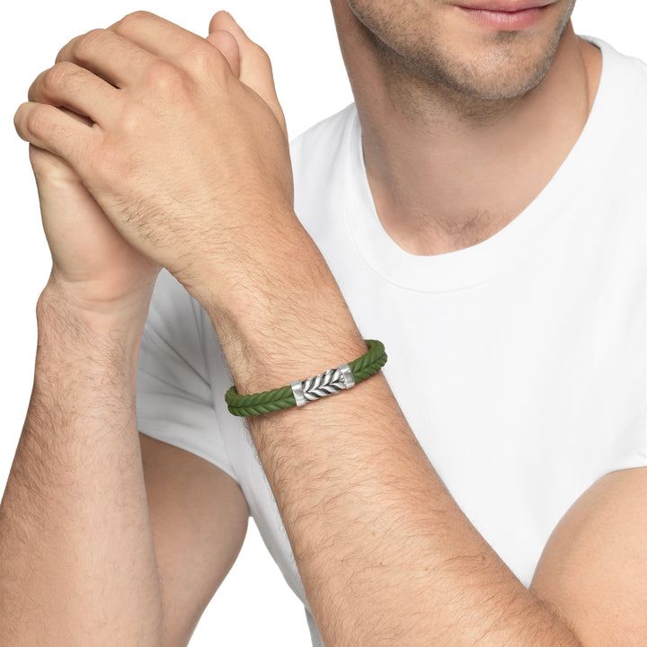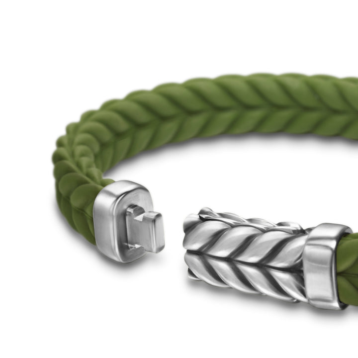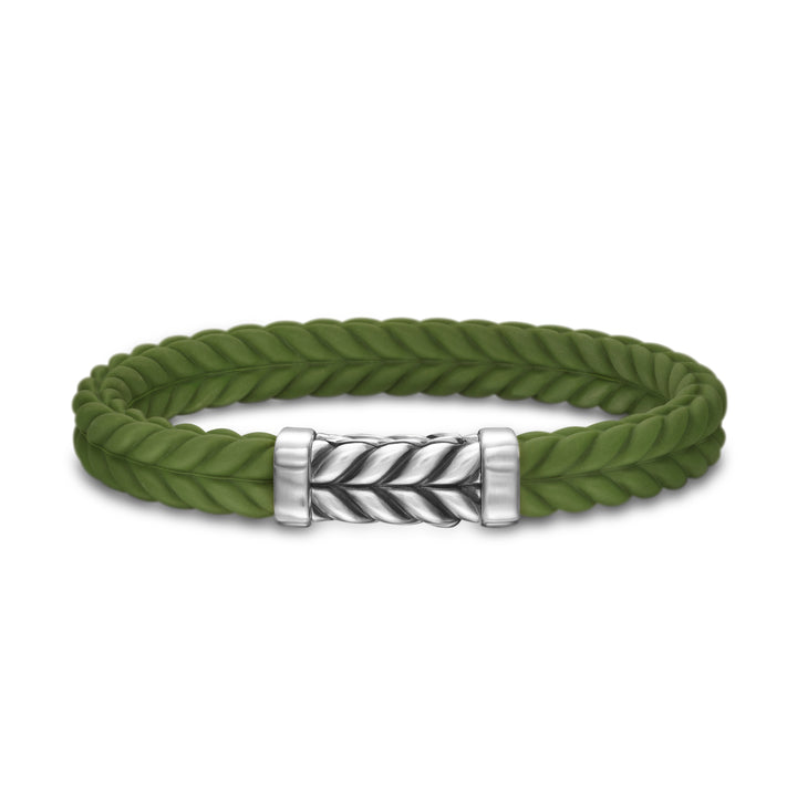 Chevron Bracelet in Green Rubber with Sterling Silver, 9mm