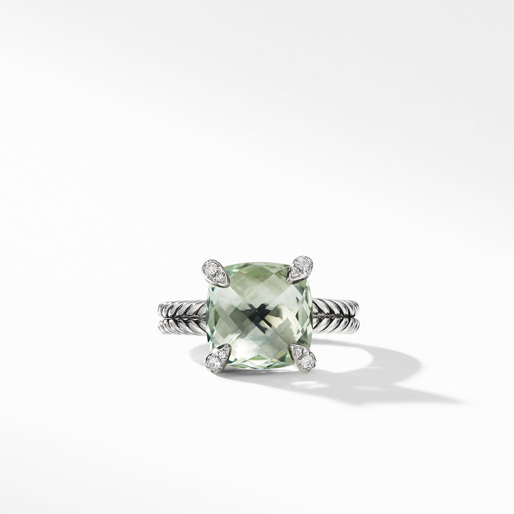 Sterling silver • Prasiolite, Pavé diamonds, .05 total carat weight, • Ring, 11mm, • Ref: R12643DSSAPLDI6