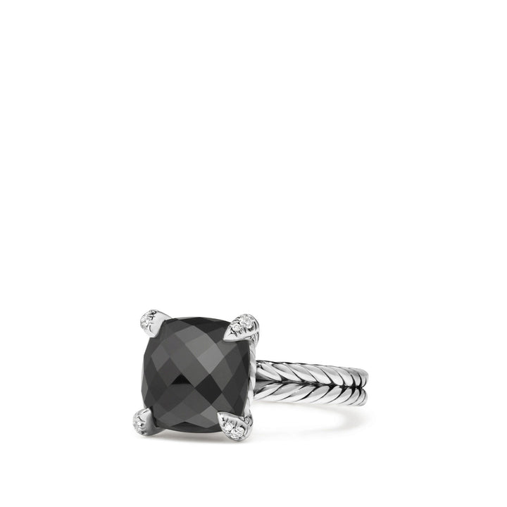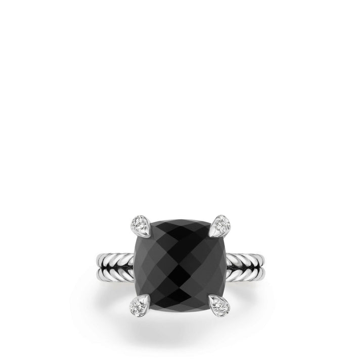Chatelaine Ring with Black Onyx and Diamonds, 11mm