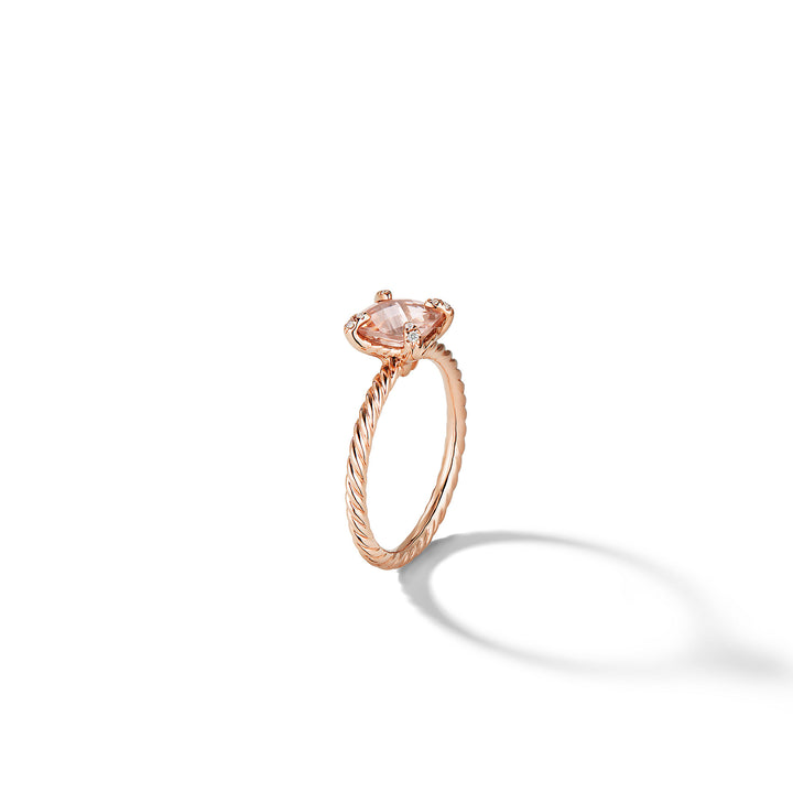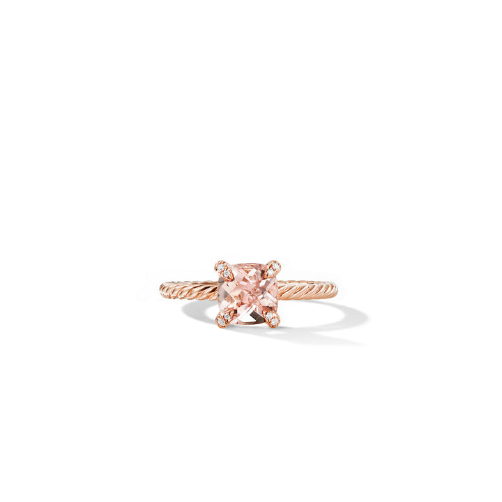 18-karat Rose Gold • Faceted Morganite, Pavé Diamonds, 0.02 total carat weight, • Ring, 7mm