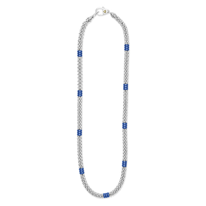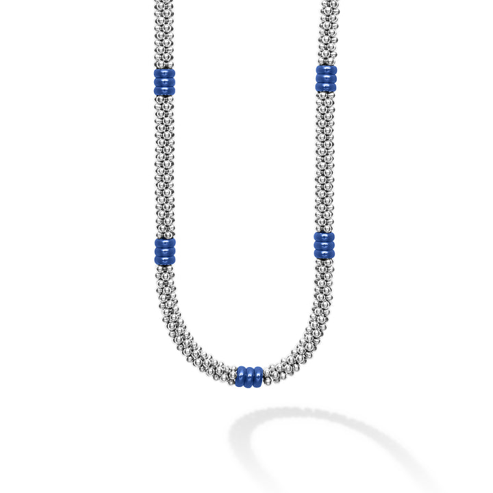A sterling silver Caviar beaded necklace with nine ultramarine ceramic stations.