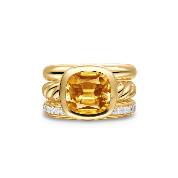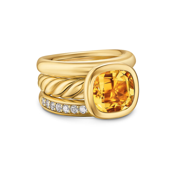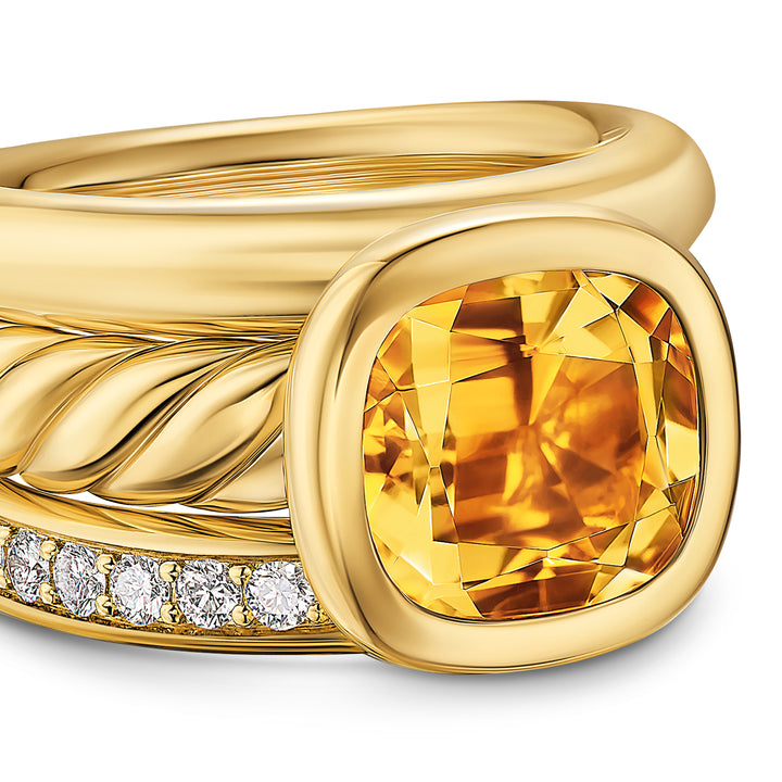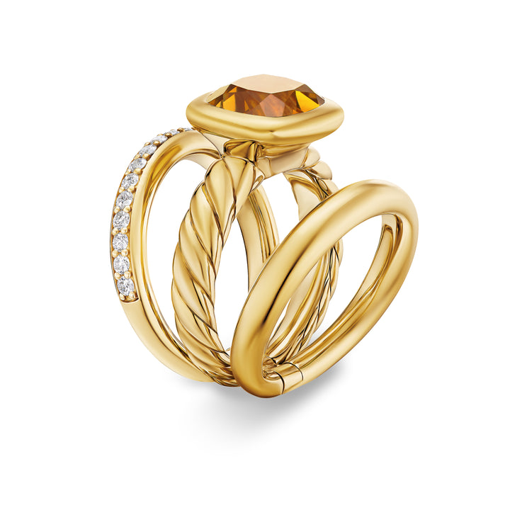 DY Mercer® Three Row Stone Ring in 18K Yellow Gold with Citrine and Diamonds, 12mm