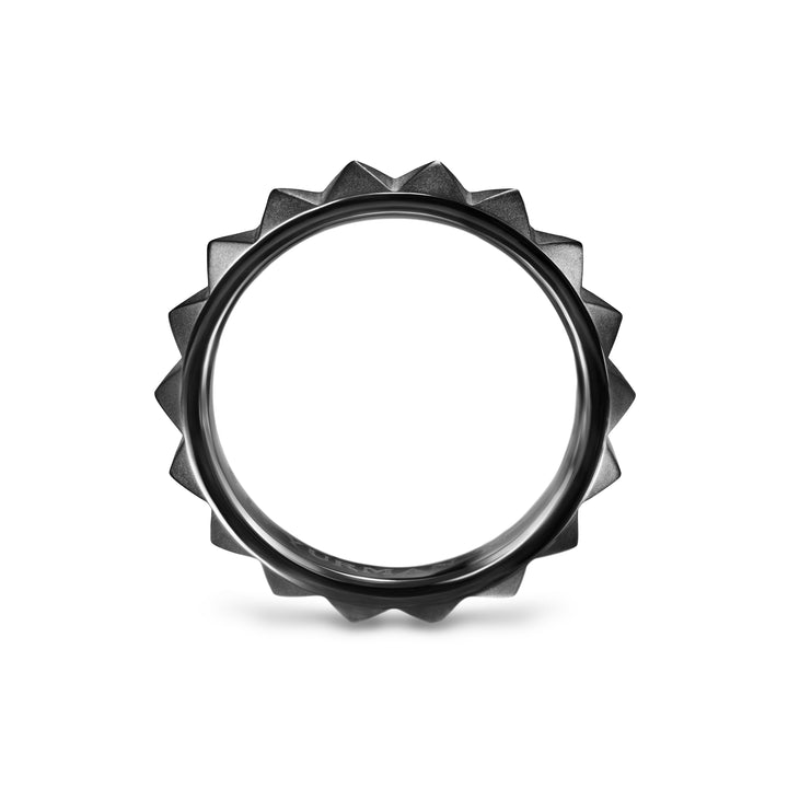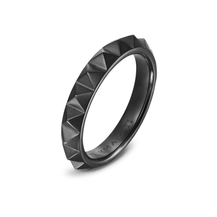 This design references the pyramid an enduring form that connects us to our ancient roots in art, architecture and design. Black titanium Ring, 4mm R35263MBB11