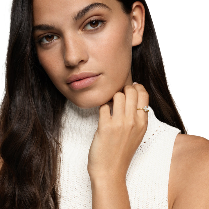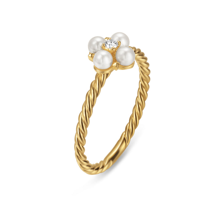 18-karat yellow gold Akoya white pearls, 2.75-3.25mm, Pavé-set diamonds, 0.03 total carat weight Ring, 1.7mm R18029D88DKWDI8