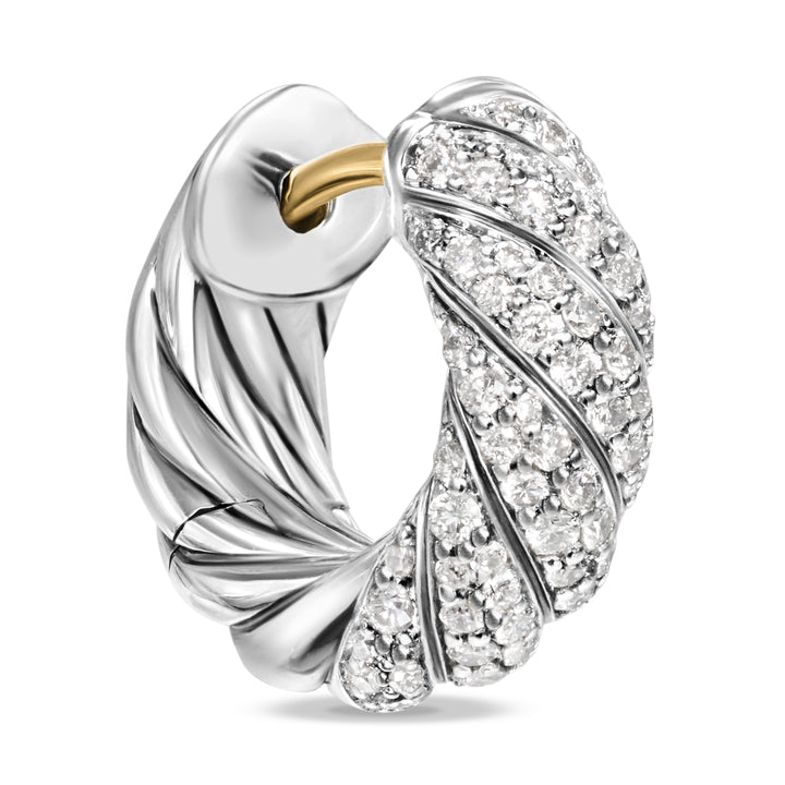 Sculpted Cable Hoop Earrings in Sterling Silver with Diamonds, 14.4mm