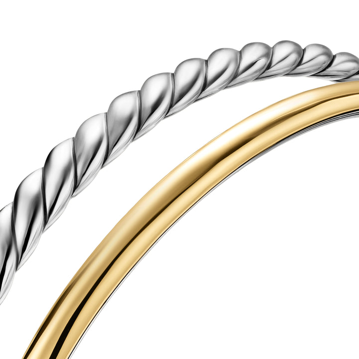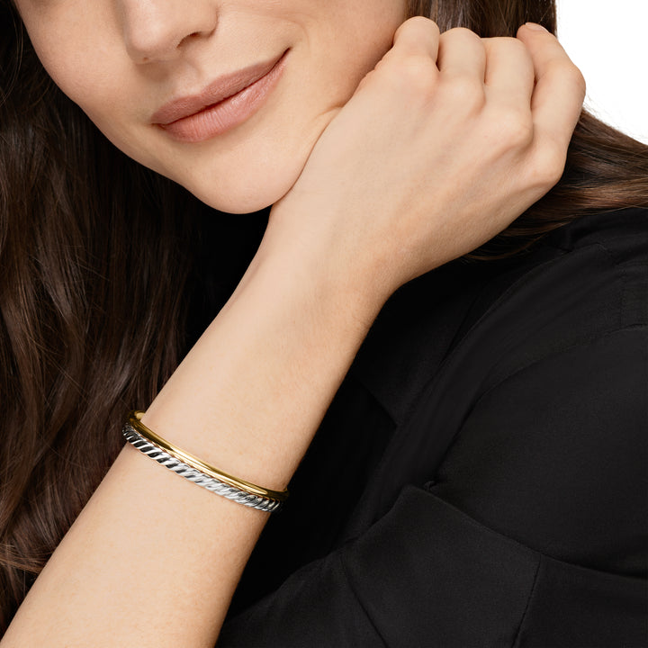 DY Mercer Two Row Cuff Bracelet in Sterling Silver with 18K Yellow Gold, 8mm