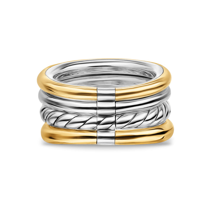 DY Mercer® Four Row Stone Ring in Sterling Silver with 18K Yellow Gold, Champagne Citrine and Diamonds, 14mm