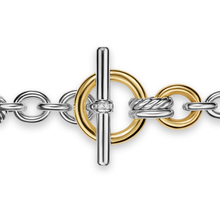 DY Mercer Toggle Chain Necklace in Sterling Silver with 18K Yellow Gold and Diamonds, 8mm