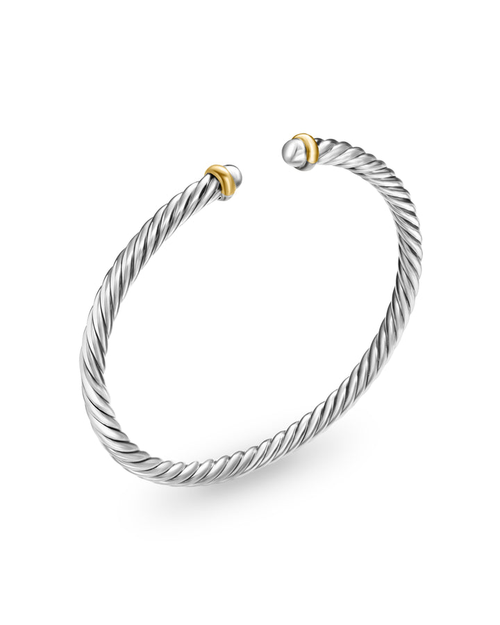 Cable Flex Bracelet in Sterling Silver with 14K Yellow Gold, 4mm
