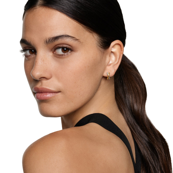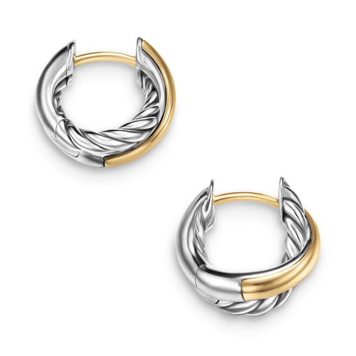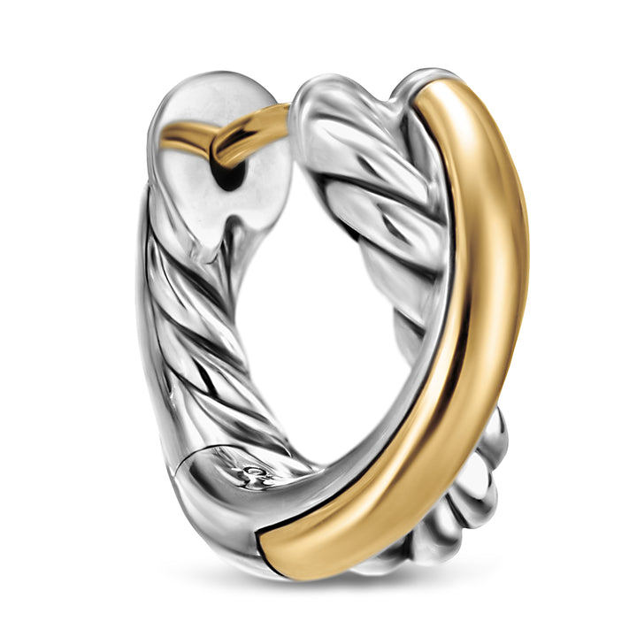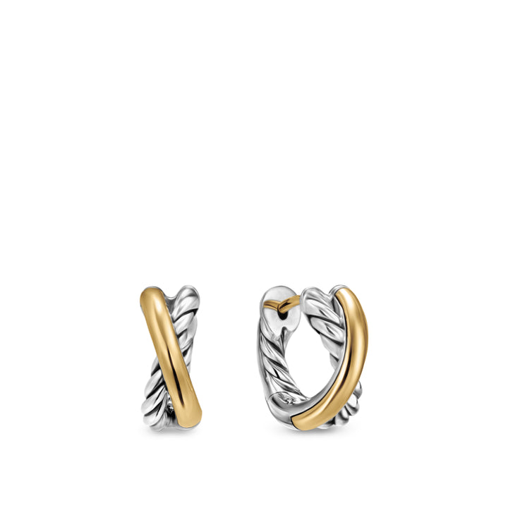 Crossover Huggie Hoop Earrings in Sterling Silver with 18K Yellow Gold, 12.4mm