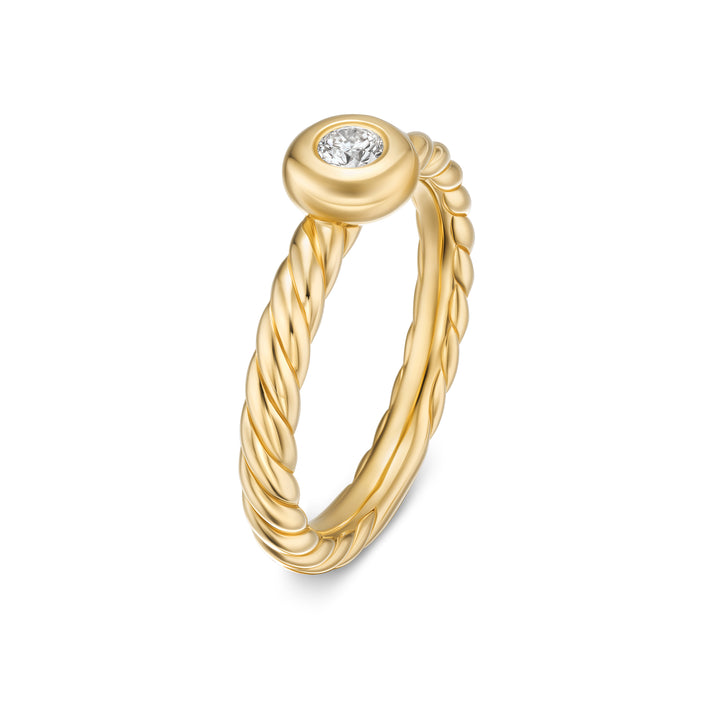 Petite Cable Ring in 18K Yellow Gold with Center Diamond, 2.8mm