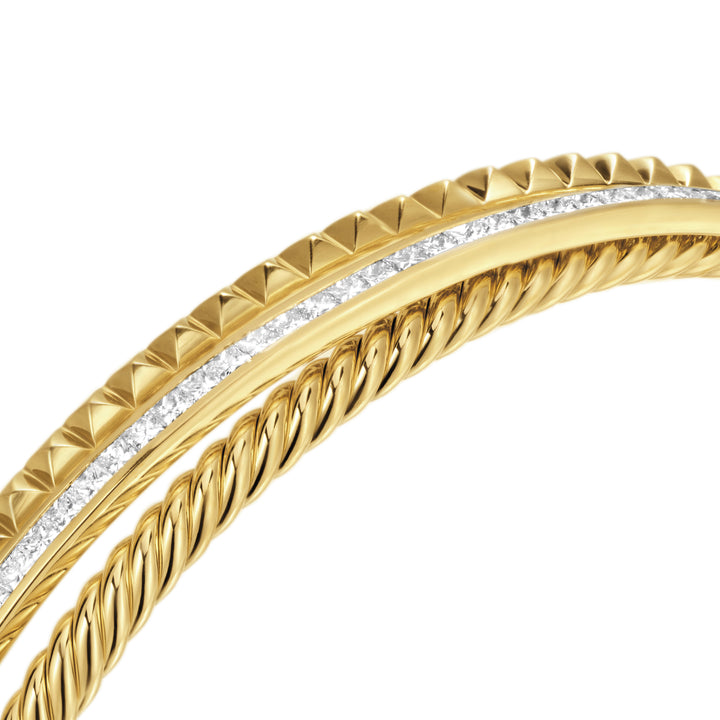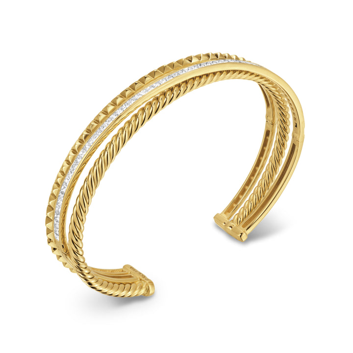 Crossover Trio Three Row Cuff Bracelet in 18K Yellow Gold with Diamonds, 11mm