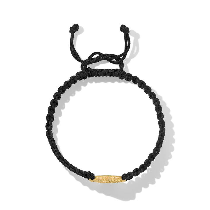 Waves Black Nylon Woven Station Bracelet with 18K Yellow Gold, 15mm