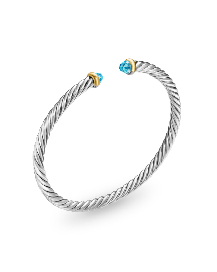 Cable Flex Bracelet in Sterling Silver with 14K Yellow Gold and Blue Topaz, 4mm