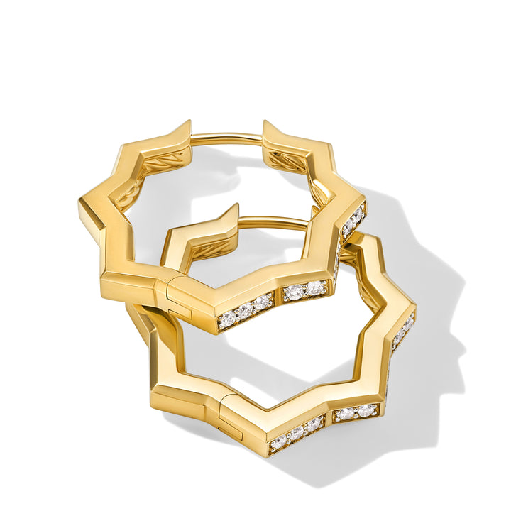 Zig Zag Stax Hoop Earrings in 18K Yellow Gold with Diamonds, 22.8mm