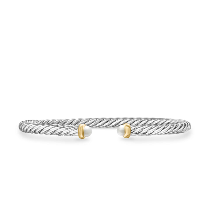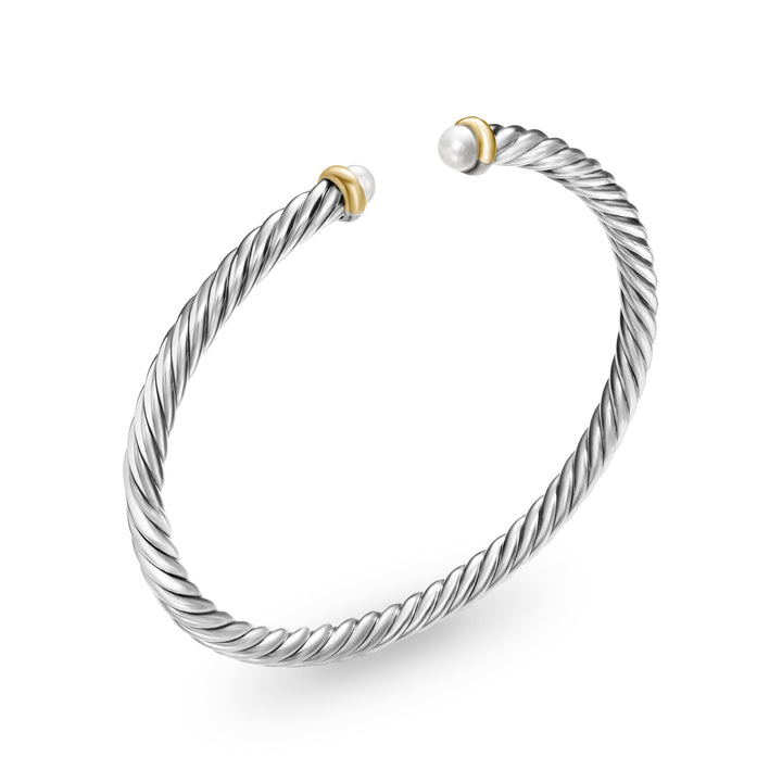 Cable Flex Bracelet in Sterling Silver with 14K Yellow Gold and Pearls, 4mm