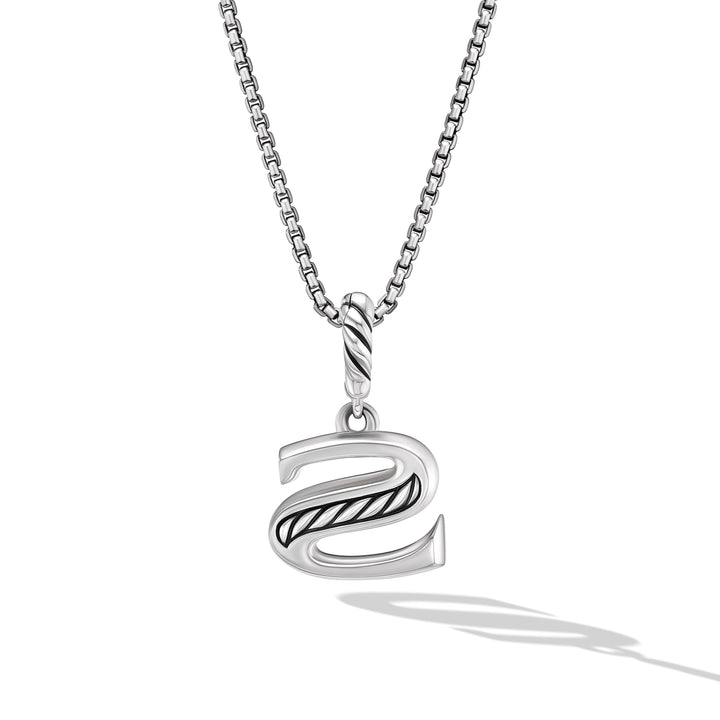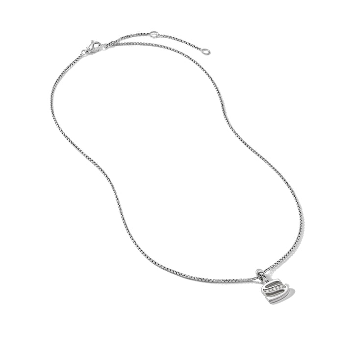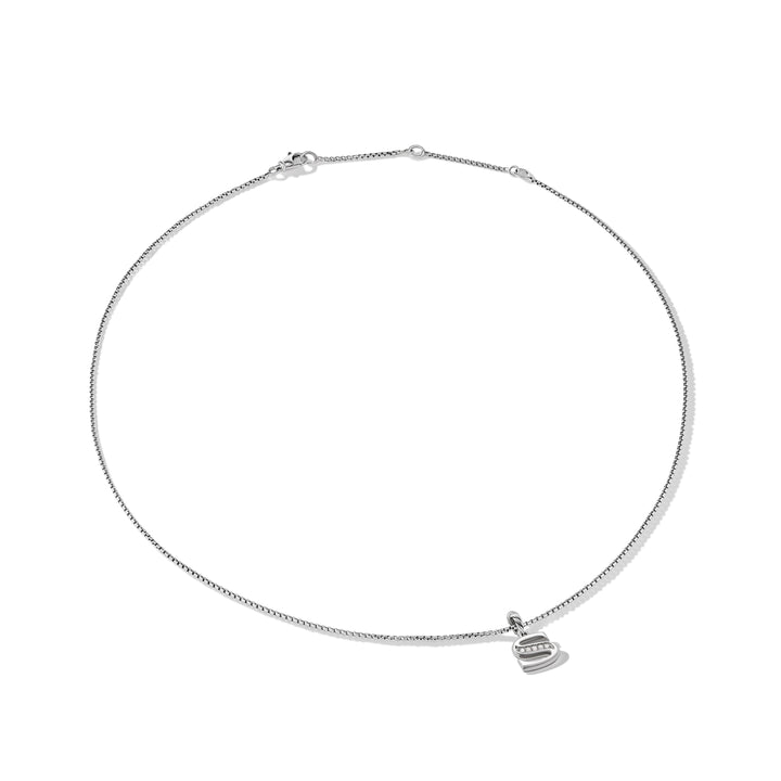 Pave Initial Pendant Necklace in Sterling Silver with Diamond S