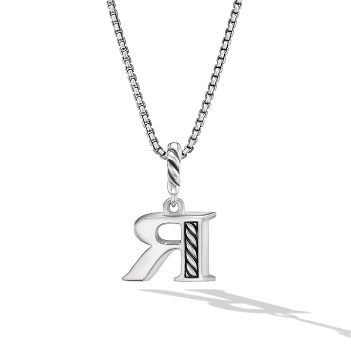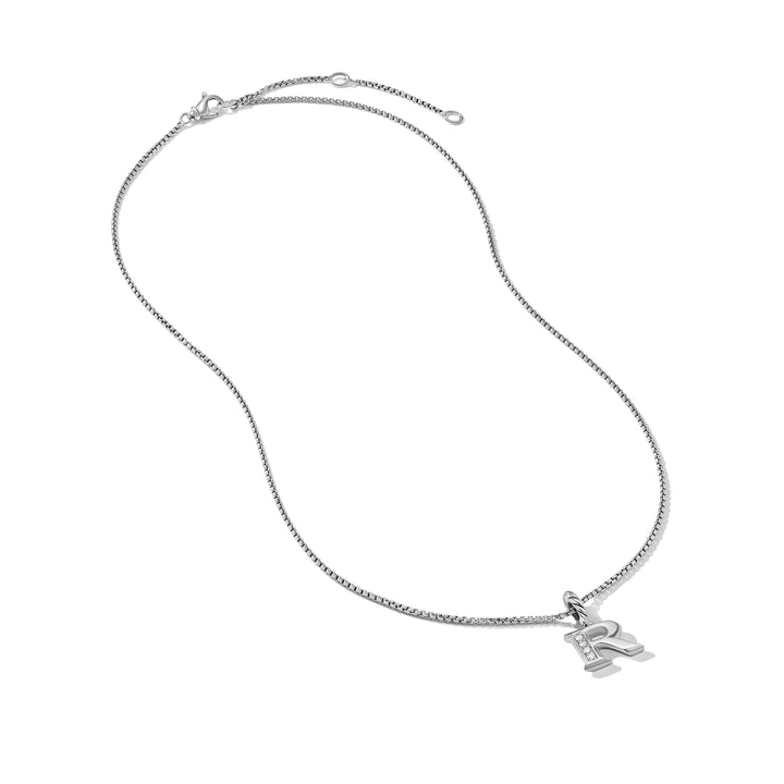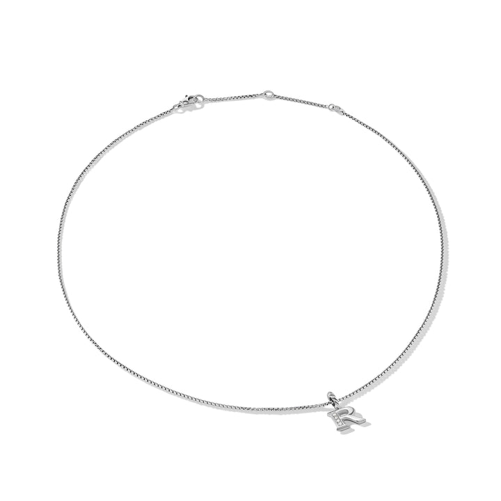 Pave Initial Pendant Necklace in Sterling Silver with Diamond R