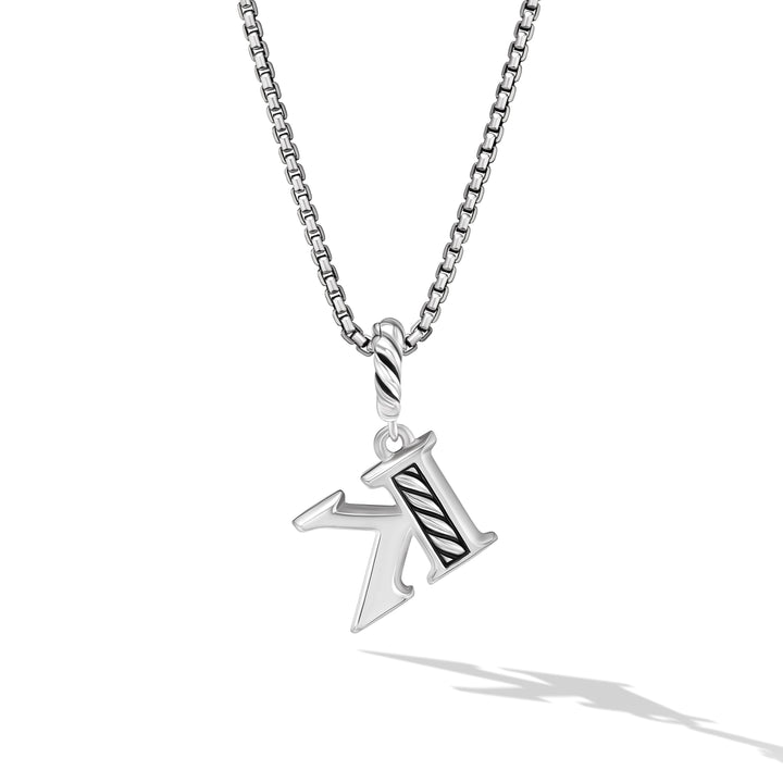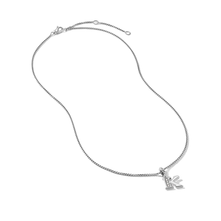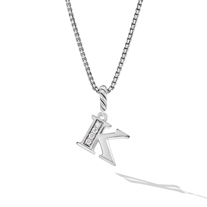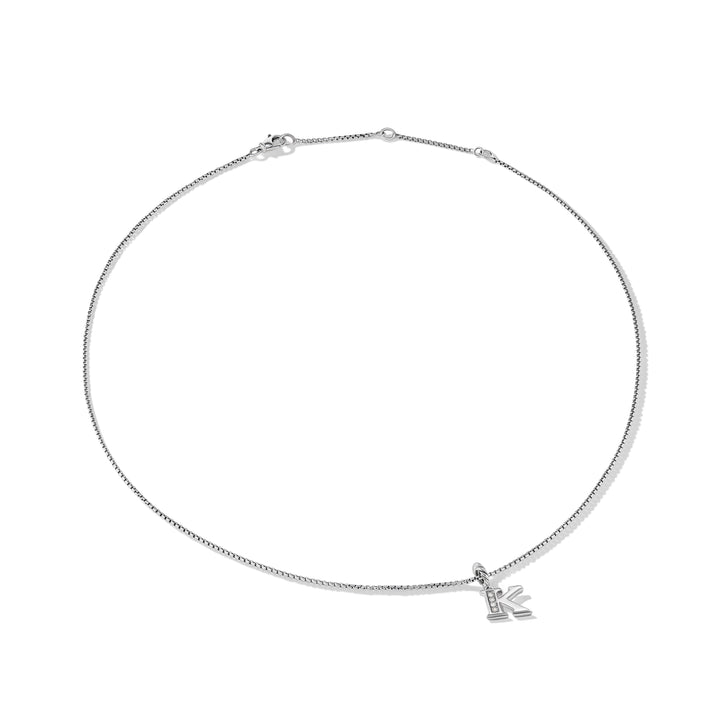 Pave Initial Pendant Necklace in Sterling Silver with Diamond K