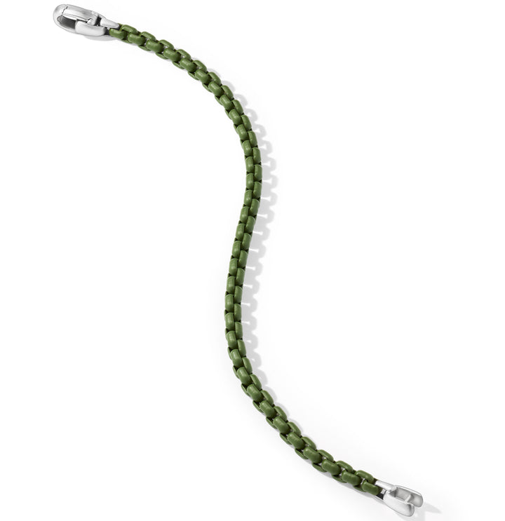 Box Chain Bracelet in Sterling Silver with Green Stainless Steel, 5mm