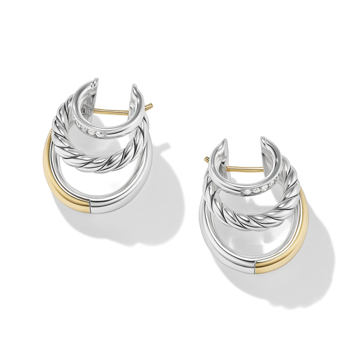 DY Mercer Multi Hoop Earrings in Sterling Silver with 18K Yellow Gold and Pave© Diamonds