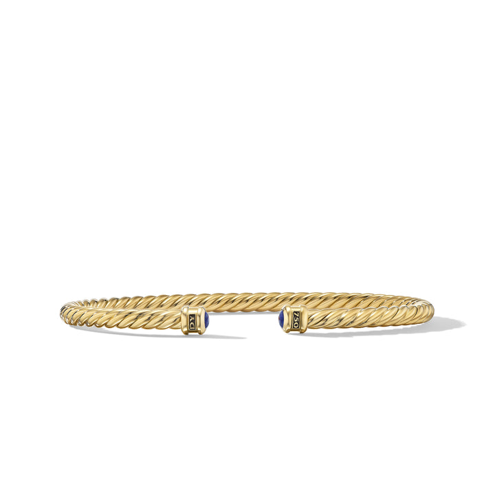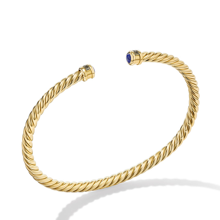 Cable Cuff Bracelet in 18K Yellow Gold with Lapis, 4mm