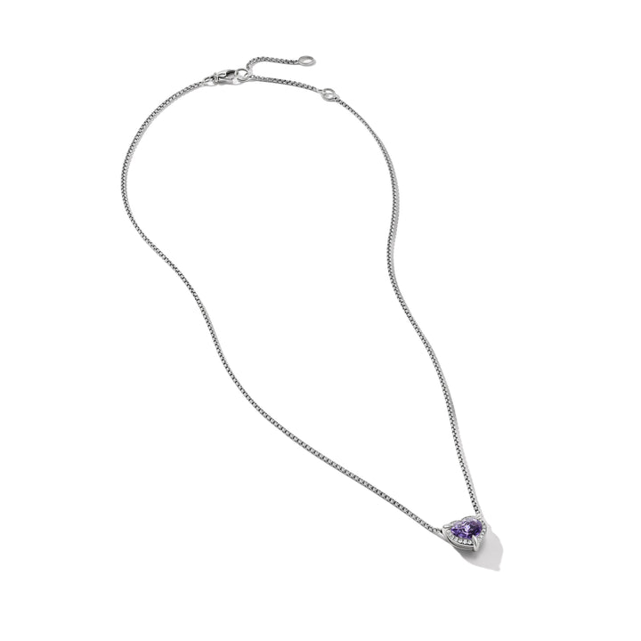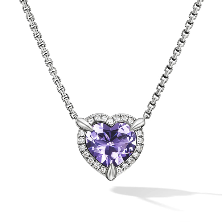 Chatelaine Heart Pendant Necklace in Sterling Silver with Amethyst and Pave© Diamonds