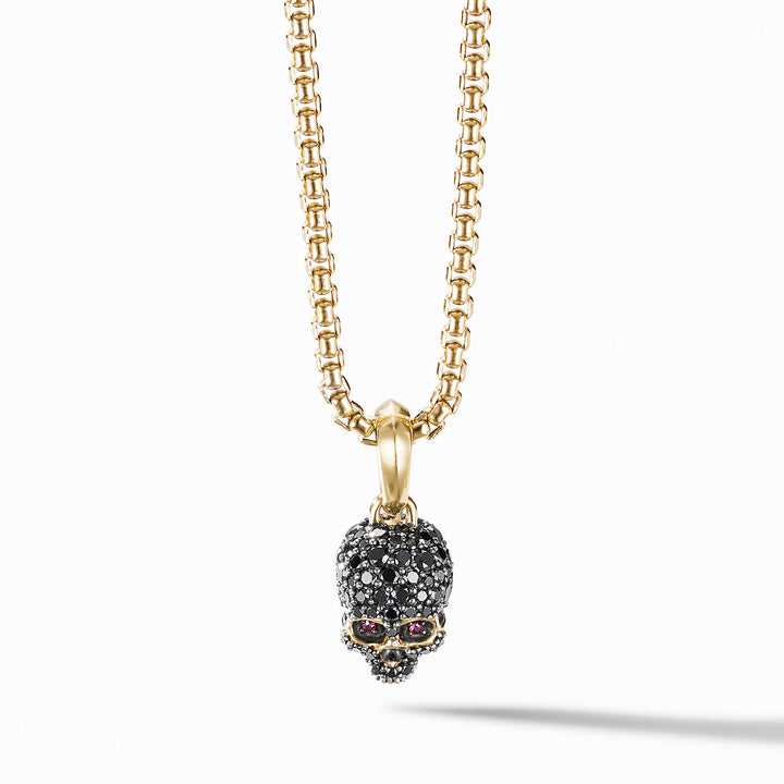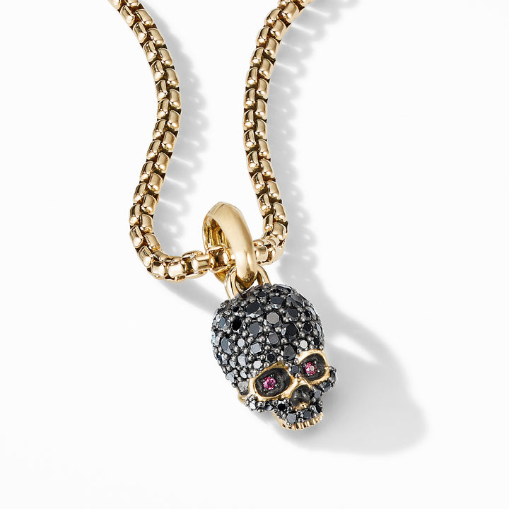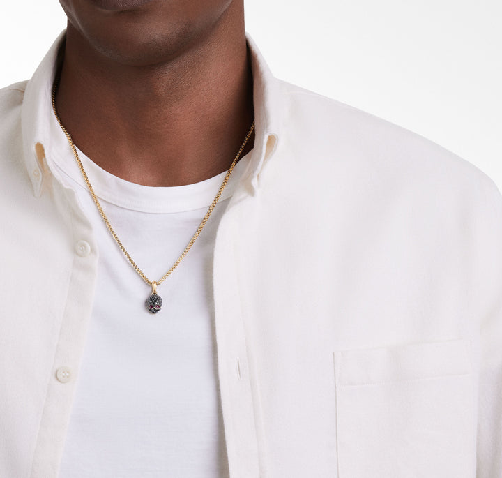 Memento Mori Skull Amulet with Full Pave© Black Diamonds, Rubies and 18K Yellow Gold