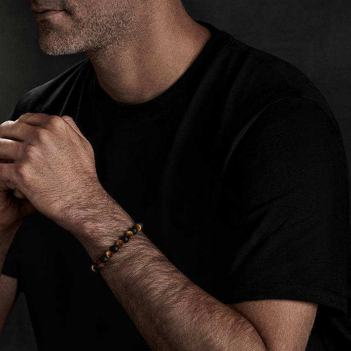 Sterling silver • Tigers eye and black onyx • Bracelet, 8mm • Lobster clasp