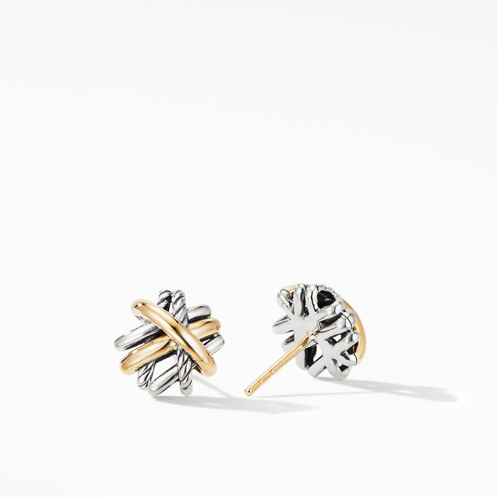 Crossover Stud Earrings in Sterling Silver with 18K Yellow Gold