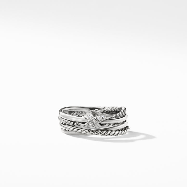 X Crossover Band Ring in Sterling Silver with Pave© Diamonds