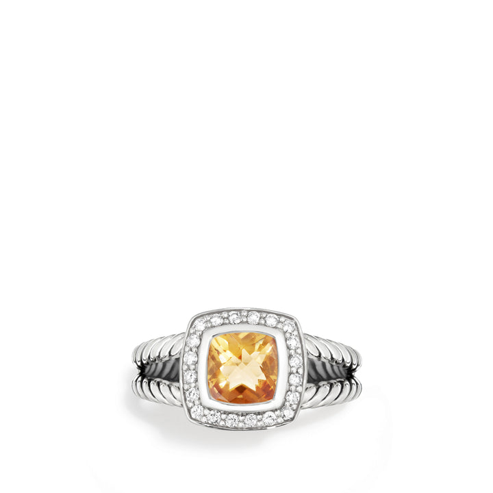 Sterling Silver • Faceted Citrine, 7 x 7mm, Pavé Diamonds, 0.17 total carat weight • Ring, 4-11mm • Splitshank