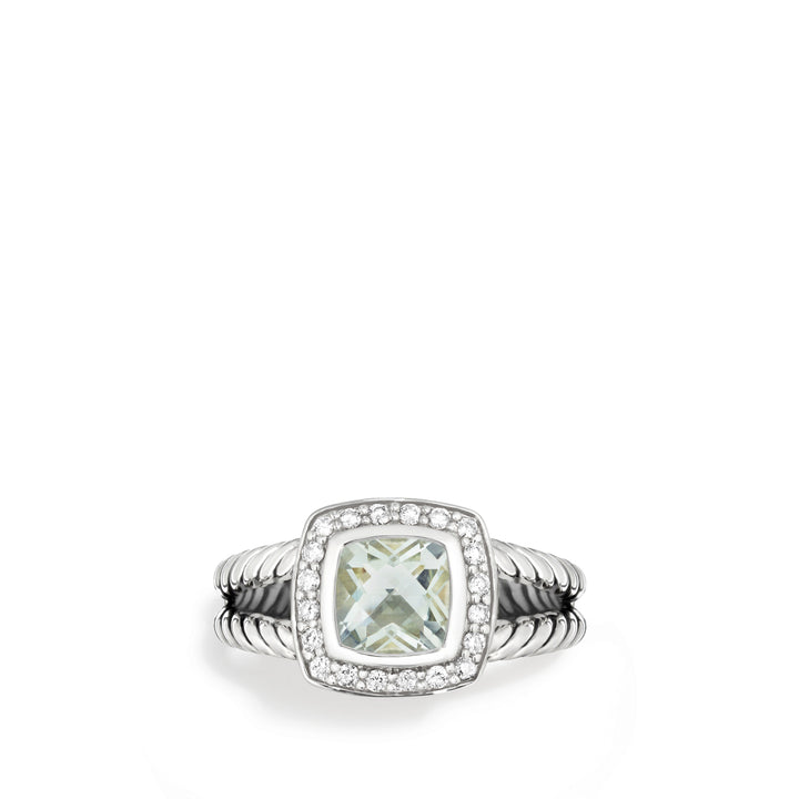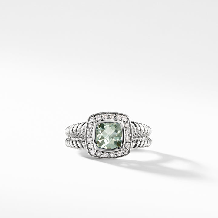Petite Albion Ring in Sterling Silver with Prasiolite and Pave© Diamonds