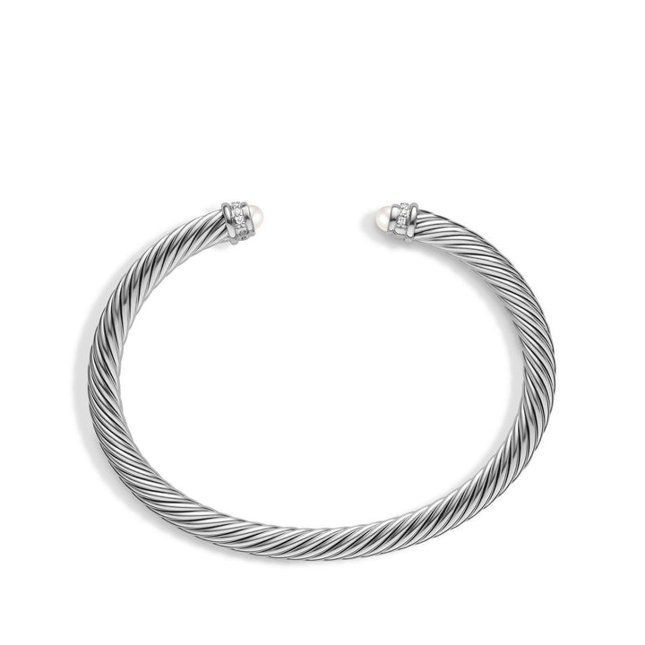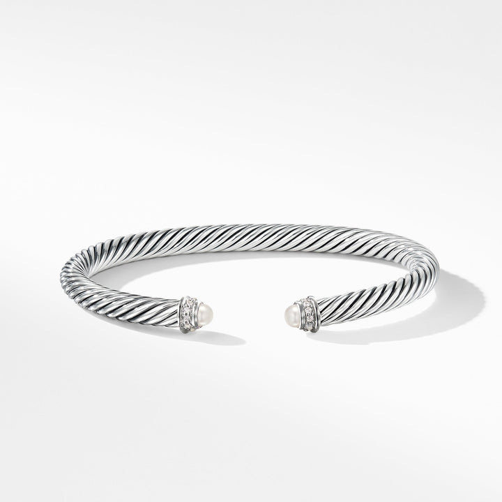 Cable Classics Bracelet in Sterling Silver with Pearls and Pave© Diamonds