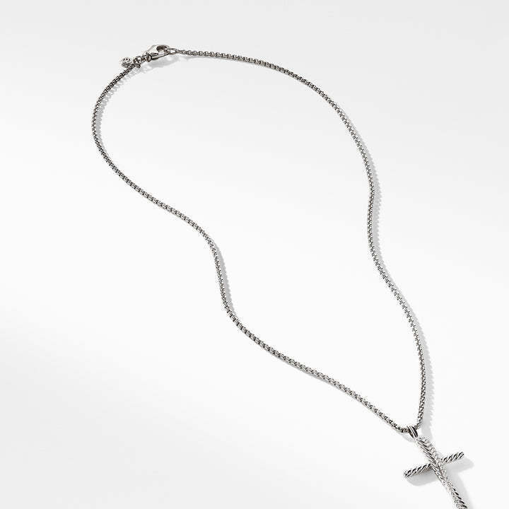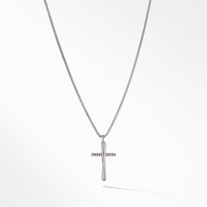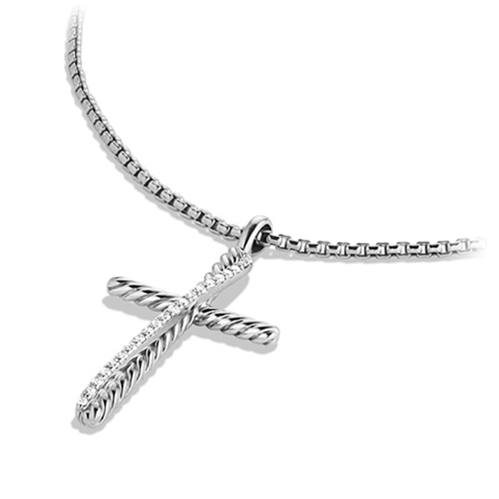 Sterling silver • Pavé diamonds, 0.13 total carat weight, • Baby box chain, 1.7mm wide • Cross, 29x18mm • Lobster clasp, • Ref: N07374 SSADI17