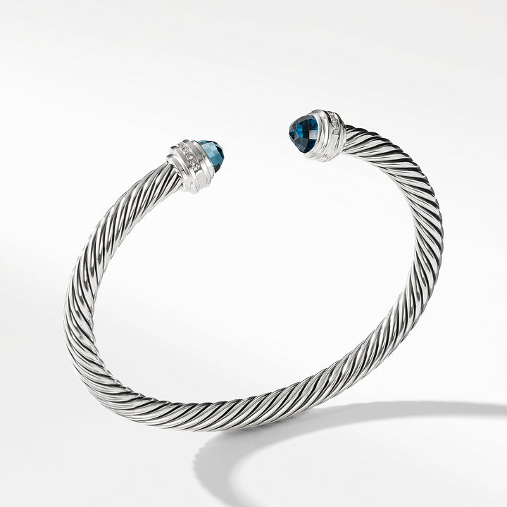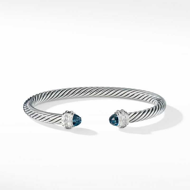 Cable Classics Bracelet in Sterling Silver with Hampton Blue Topaz and Pave© Diamonds