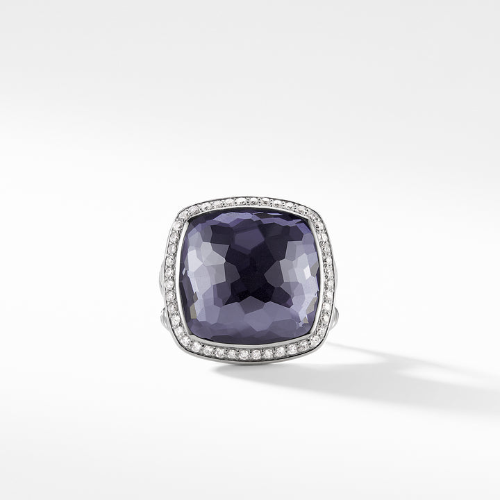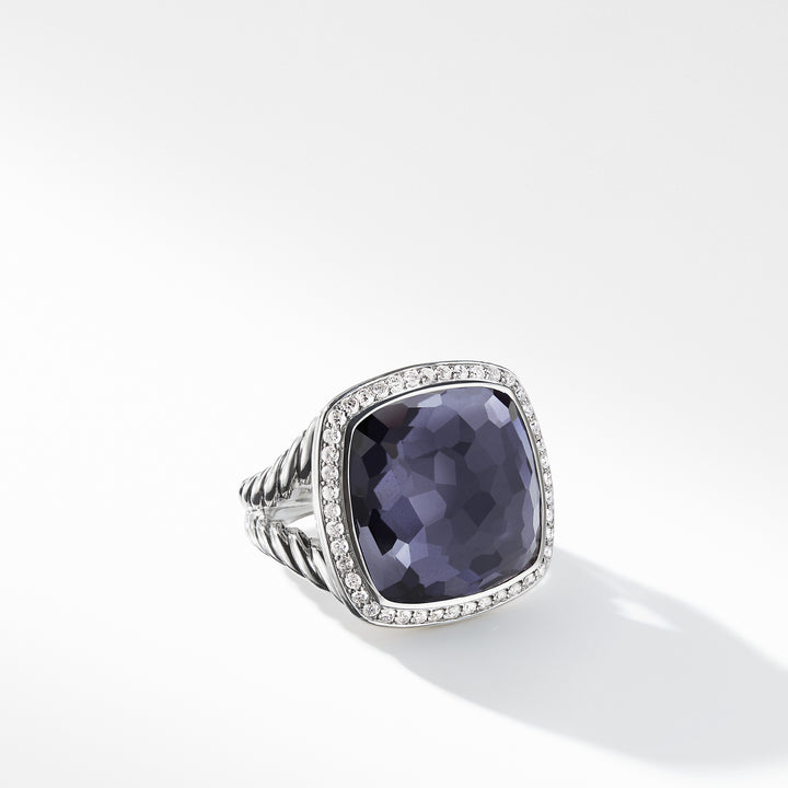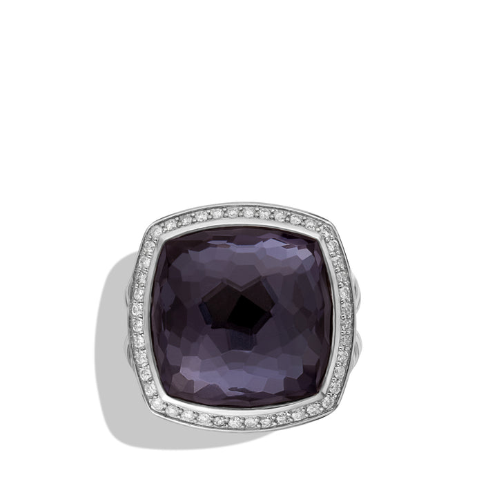 Sterling silver • Faceted Black Orchid (lavender amethyst with hematine back), 17 x17mm, Pavé diamonds, .37 total carat weight, • Ring, 5-21mm wide • Ref: R12274DSSAAHDI7