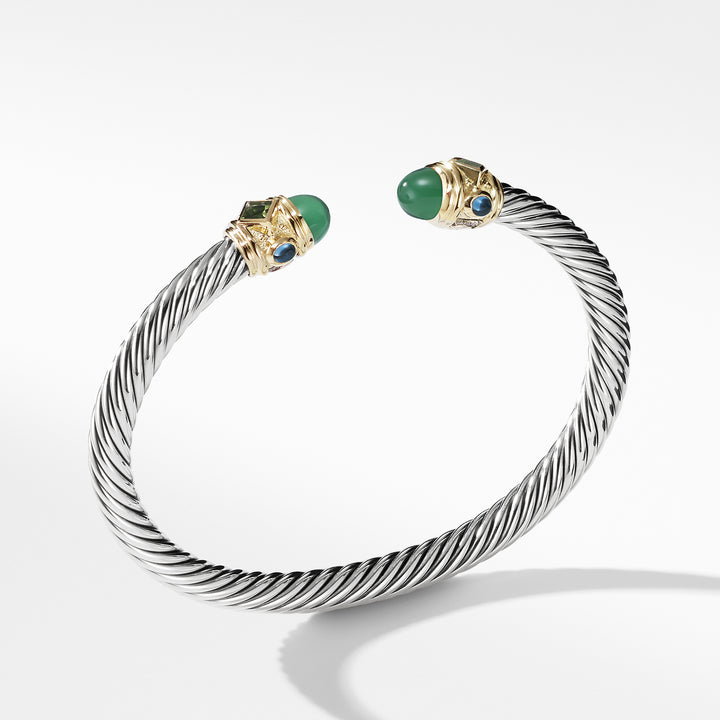 Renaissance Bracelet in Sterling Silver with Green Onyx, Chrome Diopside, Hampton Blue Topaz and 14K Yellow Gold