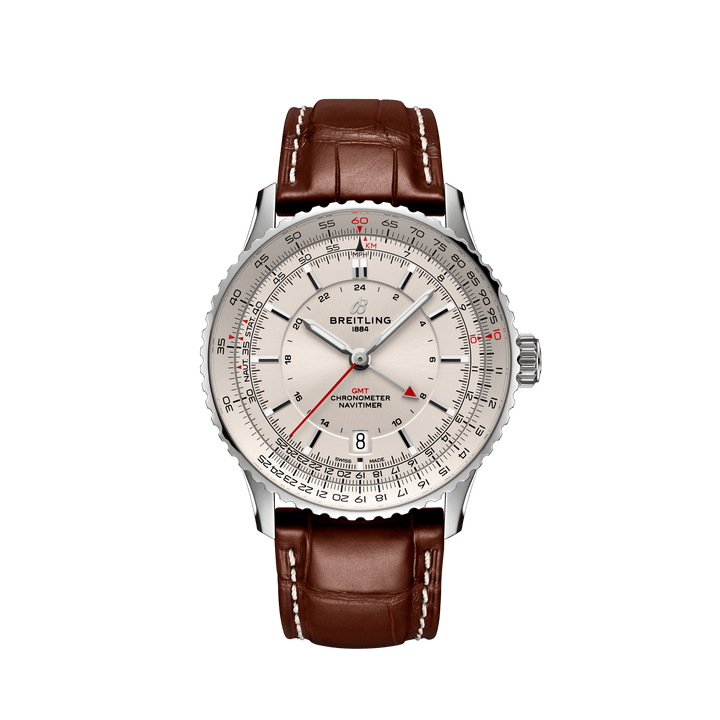 Breitling’s most versatile Navitimer—for the journey. The Navitimer is one of the most recognizable watches ever made. It’s on collectors’ lists of the greatest watches of all time. What began in 1952 as a tool for pilots has gone on to mean something profound to every single person who has had this timepiece along on their personal journey. The Navitimer Automatic and Automatic GMT 41 distill the iconic look, omitting the chronograph yet preserving a balanced dial composition. The central placement of the 24-hour scale on the GMT and the Automatic’s clean face, ensure the intricate slide rule stands out while streamlining the overall aesthetics. Further refining the collection, the notched bezel was incorporated for a contemporary touch, and alternating polished and brushed finishes add a dynamic play of light.