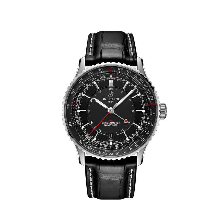 Breitling’s most versatile Navitimer—for the journey. The Navitimer is one of the most recognizable watches ever made. It’s on collectors’ lists of the greatest watches of all time. What began in 1952 as a tool for pilots has gone on to mean something profound to every single person who has had this timepiece along on their personal journey. The Navitimer Automatic and Automatic GMT 41 distill the iconic look, omitting the chronograph yet preserving a balanced dial composition. The central placement of the 24-hour scale on the GMT and the Automatic’s clean face, ensure the intricate slide rule stands out while streamlining the overall aesthetics. Further refining the collection, the notched bezel was incorporated for a contemporary touch, and alternating polished and brushed finishes add a dynamic play of light.