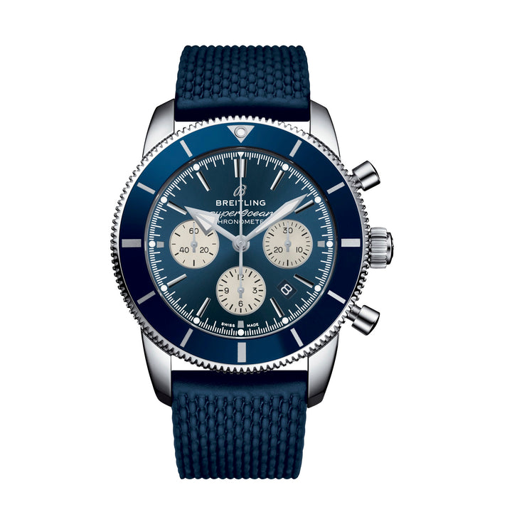 Steel - Blue Robust and timeless, this Superocean Heritage model is powered by the in-house Breitling Manufacture Caliber 01. The 44 mm-diameter dial is available in black or blue with silver...