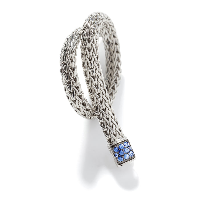 Classic Chain Silver Lava Small Bracelet with Blue Sapphire, Size UL