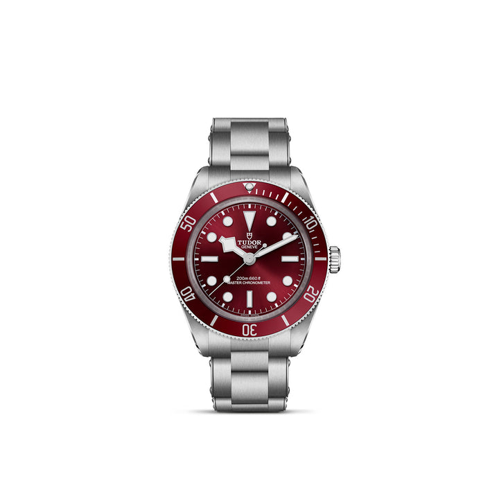 The Black Bay 58 is named after the first-ever TUDOR dive watch waterproof to 200m, the reference 7924, released in 1958. Known as the “Big Crown” among collectors, the design of the Black Bay 58 makes aesthetic references to this historic model. This year, a METAS Master Chronometer-certified burgundy execution joins the Black Bay 58 family. This is the first time the model is available on a 5-link stainless steel bracelet.