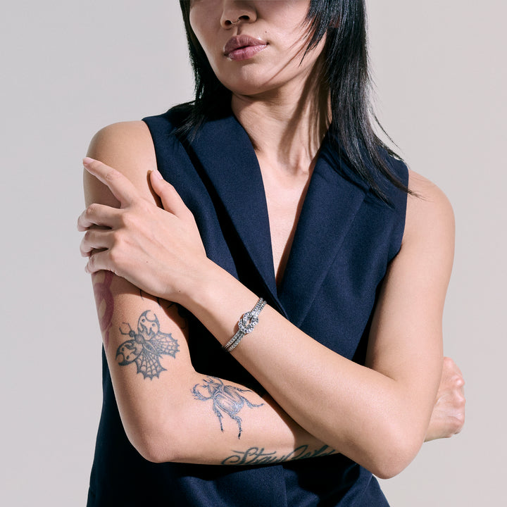 Classic Chain Silver Manah 3.5mm Slim Chain Double Row Bracelet with Pusher Clasp, Size UM