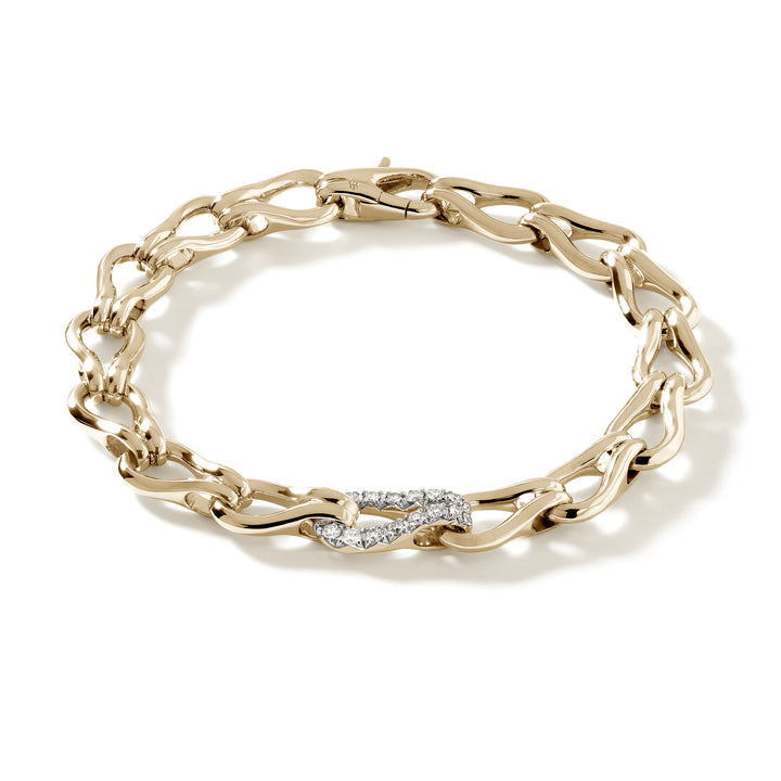 Laid-back lines, natural flow. An effortless, organic design language inspired by free-form shapes found in nature. Style No.: BUGGX90109022DIXUMMetal: 14k Yellow GoldGauge: 8.5MMCarat Weight: 0.44ctSetting: PaveClosure: Lobster ClaspSize: M
