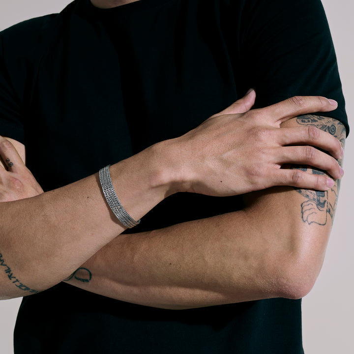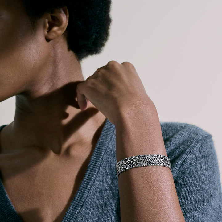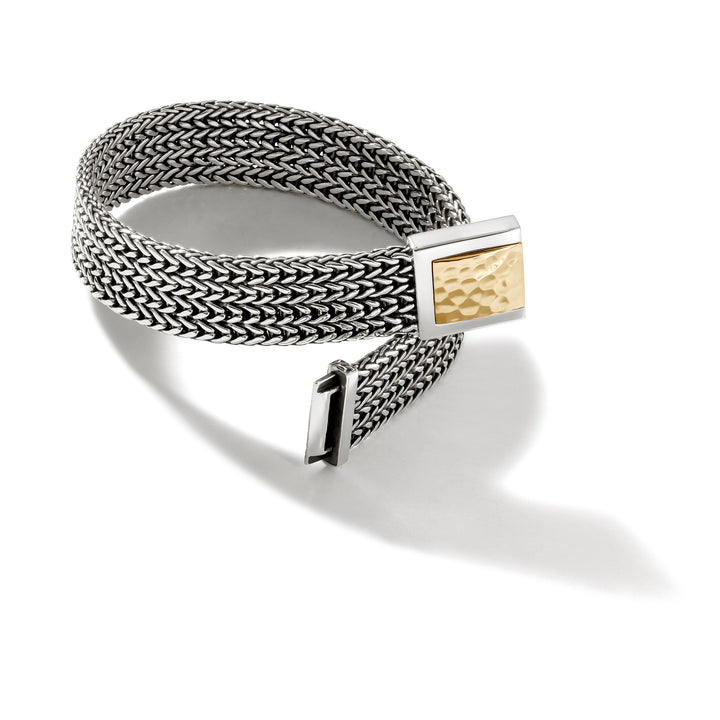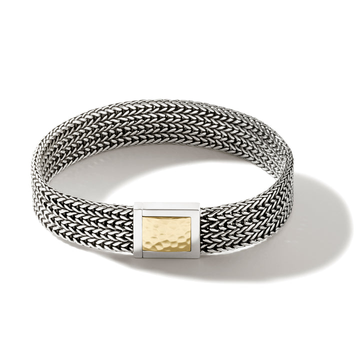 Classic Chain Hammered 18K Gold & Silver 12mm Chain Bracelet with Pusher Clasp, Size UM BG