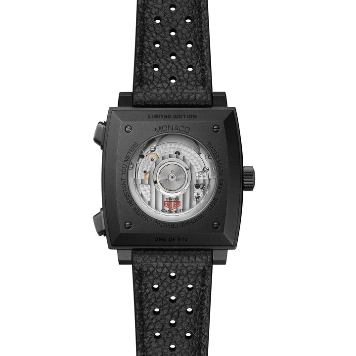 DESCRIPTIONThe TAG Heuer Monaco Chronograph Stopwatch combines the Calibre 11, a black DLC titanium case, and a HEUER-signed dial in a limited-edition tribute to original TAG Heuer stopwatches. With striking red...