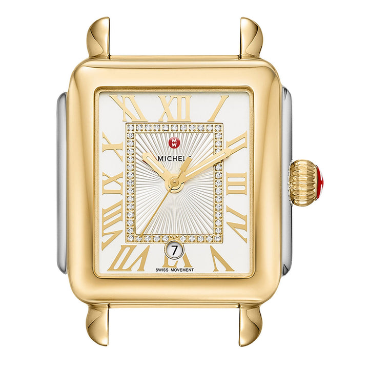 This Two-Tone Deco Madison Mid shines with 47 hand-set diamonds atop the silver white sunray dial. Case Size: 33 mm x 35 mmDial: Silver Sunray with Diamonds and TextureStrap Size: 18...
